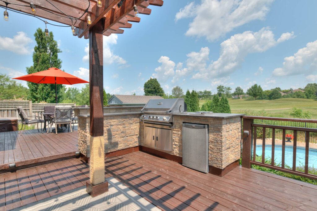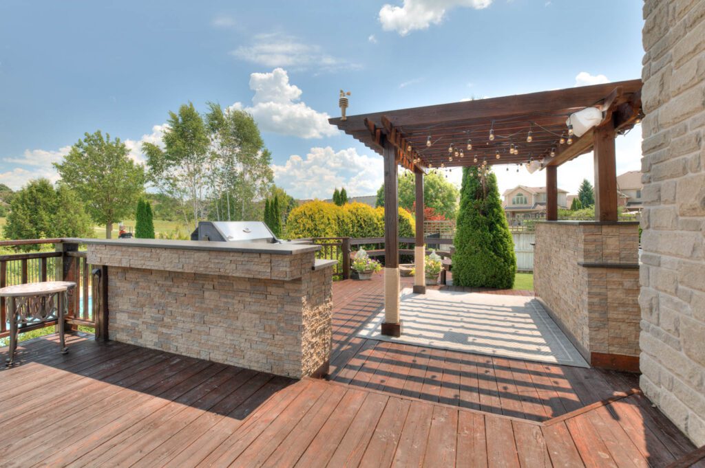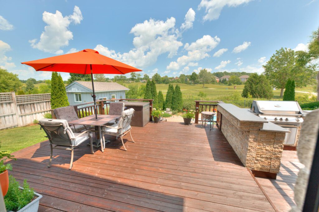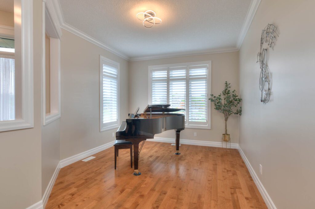 Backing onto Conestogo Golf Course with stunning views of lush greens and manicured fairways, this elegant custom home offers the perfect blend of luxury, comfort, and location. Enjoy the charm of small-town living just steps from the Grand River and nearby trails, while only a 10-minute drive to Waterloo, St. Jacobs, and Elmira. A welcoming vestibule opens to a grand curved staircase and center hall layout. Natural light fills the home, showcasing crown moulding, California shutters, and rich maple hardwood. The living room, currently a music room, provides flexibility, while the formal dining room features pot lights, elegant trim, and direct access to the high-end maple kitchen. Designed for function and style, the kitchen boasts granite counters, a custom hood, built-in appliances, wall-to-wall pantry storage, and an 8-ft island with breakfast bar. The dinette opens to a deck overlooking the golf course and your private backyard retreat. The family room features a tray ceiling, built-ins, and gas fireplace. A 2-pc bath and mudroom are located off the garage entry. Upstairs offers four bedrooms, a home office with custom built-ins, upper laundry with cabinetry, and a 4-pc bath. The primary suite features double-door entry, custom walk-in closet, double-sided gas fireplace shared with the 5-pc ensuite which has granite counters, a jetted tub, and body-jet shower. The finished basement includes a rec/media room, gym, 4-pc bath, and a newly constructed Wine Bar…a destination in itself. With cedar plank ceilings and a warm, inviting aroma that awakens the senses, this space feels like a getaway. Pull up a stool at the bar, complete with built-in wine and beverage fridges, or cozy up by the fireplace with a blanket to enjoy a movie or the big game. The fully fenced backyard boasts an in-ground pool with waterfall, two-tier deck with outdoor kitchen, bar, pergola, hot tub, and gas firepit. Stamped concrete and lush gardens complete the curb appeal.