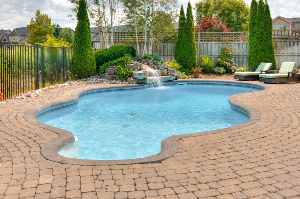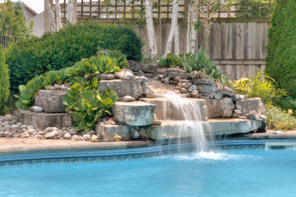 - • Pool has underwater lights with mullti-layered rock waterfall