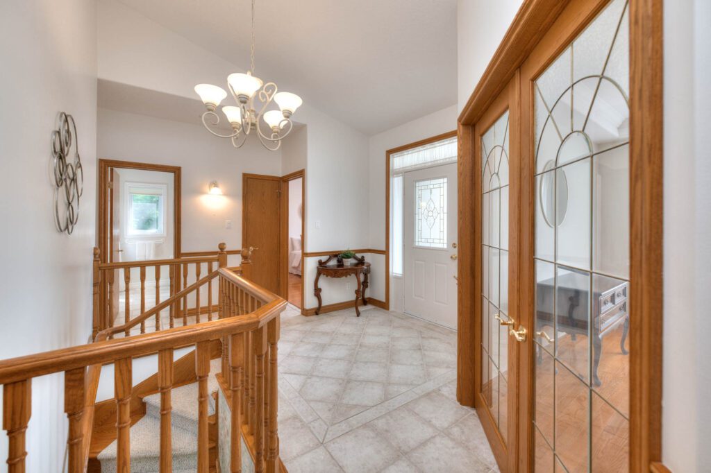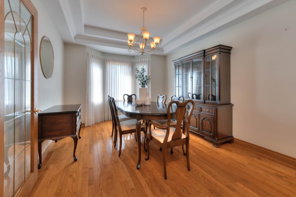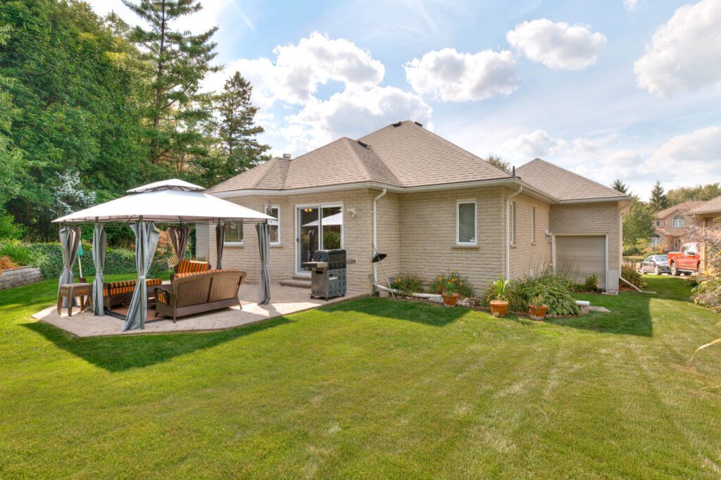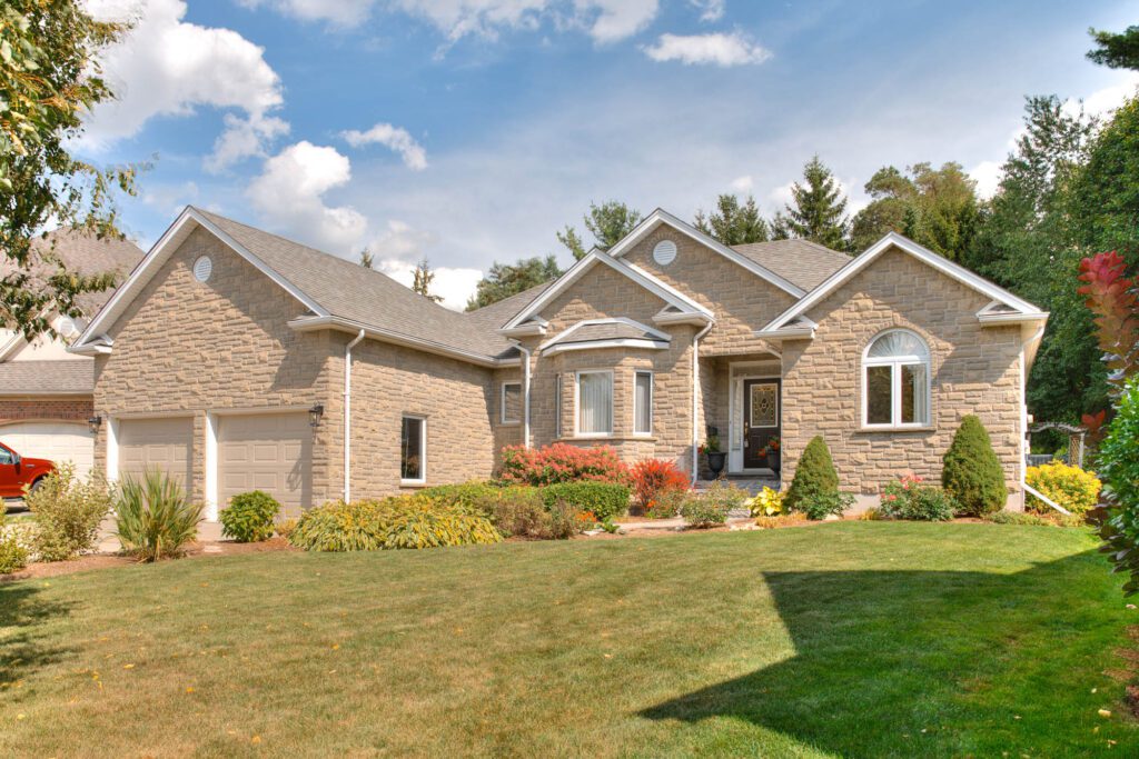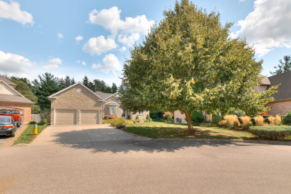 This exceptional residence is being offered for the first time by its original owner, the builder himself, reflecting unmatched craftsmanship and pride of ownership throughout. Nestled on a highly desirable court where homes rarely come available, this home combines timeless design, quality finishes, and a serene setting on a private, mature treed, 0.244-acre lot. The main floor showcases solid oak hardwood flooring through the living areas and bedrooms, and elegant solid oak trim and casings through out. A three-sided gas fireplace warms the kitchen, dinette, and living room, where expansive windows invite natural light and garden views. The oversized formal dining room impresses with a double raised tray ceiling, bay window, French doors, and gleaming hardwood floors. The kitchen is a chef’s delight with oak cabinetry and intricate detailing, crown moldings, granite counters, backsplash, built-in appliances, glass cabinetry, and a wall pantry. The split-bedroom design ensures privacy, with the primary suite tucked away featuring backyard views, a walk-in closet, and luxurious 4-piece ensuite with granite counters. Secondary bedrooms each offer hardwood floors and have close access to the main 4-piece bath. The main floor laundry/mudroom with garage access complete the main level. The fully finished basement expands the living space with large windows, a solid oak wet bar, gas fireplace, ample storage, & three versatile rooms ideal for an office, fitness, playroom, or guest space. Outdoors, the landscaping is extraordinary, offering year-round beauty with mature trees, interlocking retaining walls, a stone patio with gazebo & carefully planned perennial gardens that bloom in every season. A convenient rear garage door provides easy access to the backyard and with a four-car driveway and no sidewalk to shovel, convenience meets charm. This rare opportunity to own on such a coveted court is not to be missed.