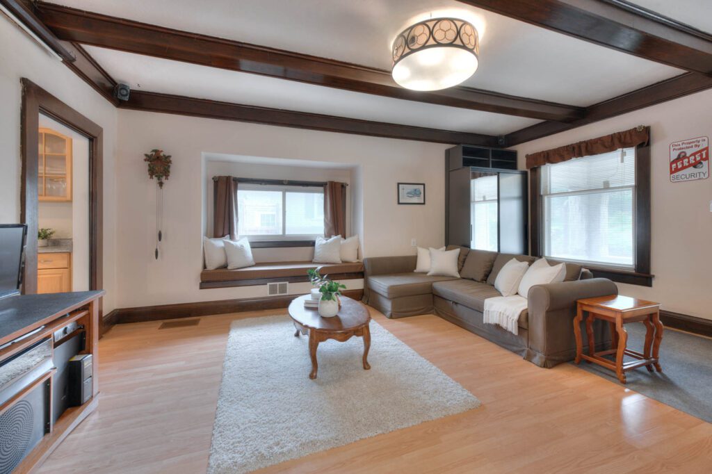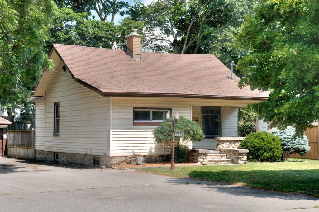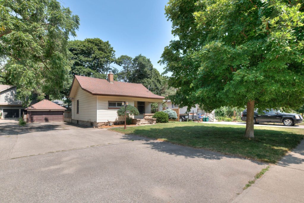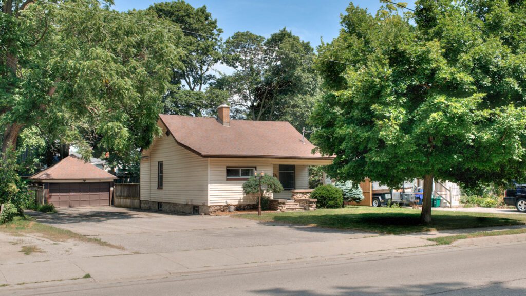 Welcome to 89 Park Avenue, nestled in one of the city’s most charming and historically rich neighbourhoods, close to the quaint village of Blair and moments to Riverbluffs Park. Surrounded by timeless architecture and mature streetscapes, this area offers a unique blend of heritage charm and natural beauty, all within walking distance to Dickson Park, the Grand River, scenic trails, and local amenities. This well-maintained home sits on a generously sized, fully fenced lot with mature trees that offer privacy and serenity. A detached 17’ x 17’ garage and a long driveway, able to accommodate up to 8 vehicles, makes this property ideal for gatherings or extra storage needs. Inside, the home retains a warm, character-filled feel. The expansive living room welcomes you with beamed ceilings, a cozy gas fireplace, built-in window seat, and durable laminate flooring. Two bedrooms with luxury vinyl plank flooring are tucked to the left side of the home. At the back, the full eat-in oak kitchen offers plenty of cabinetry and counter space, a new dishwasher, and lovely views of the peaceful backyard. A bright and versatile bonus room, perfect as a third bedroom, sunroom, or family room features large windows and LVP flooring, bringing in loads of natural light. A 4-piece main bath completes the upper level, while the unfinished basement offers potential for future living space or storage. Additional features include fresh paint throughout, 200-amp service, updated plumbing and electrical, and a newer AC unit (2021). This is a rare opportunity to own a piece of Cambridge’s architectural legacy while enjoying the conveniences of today.