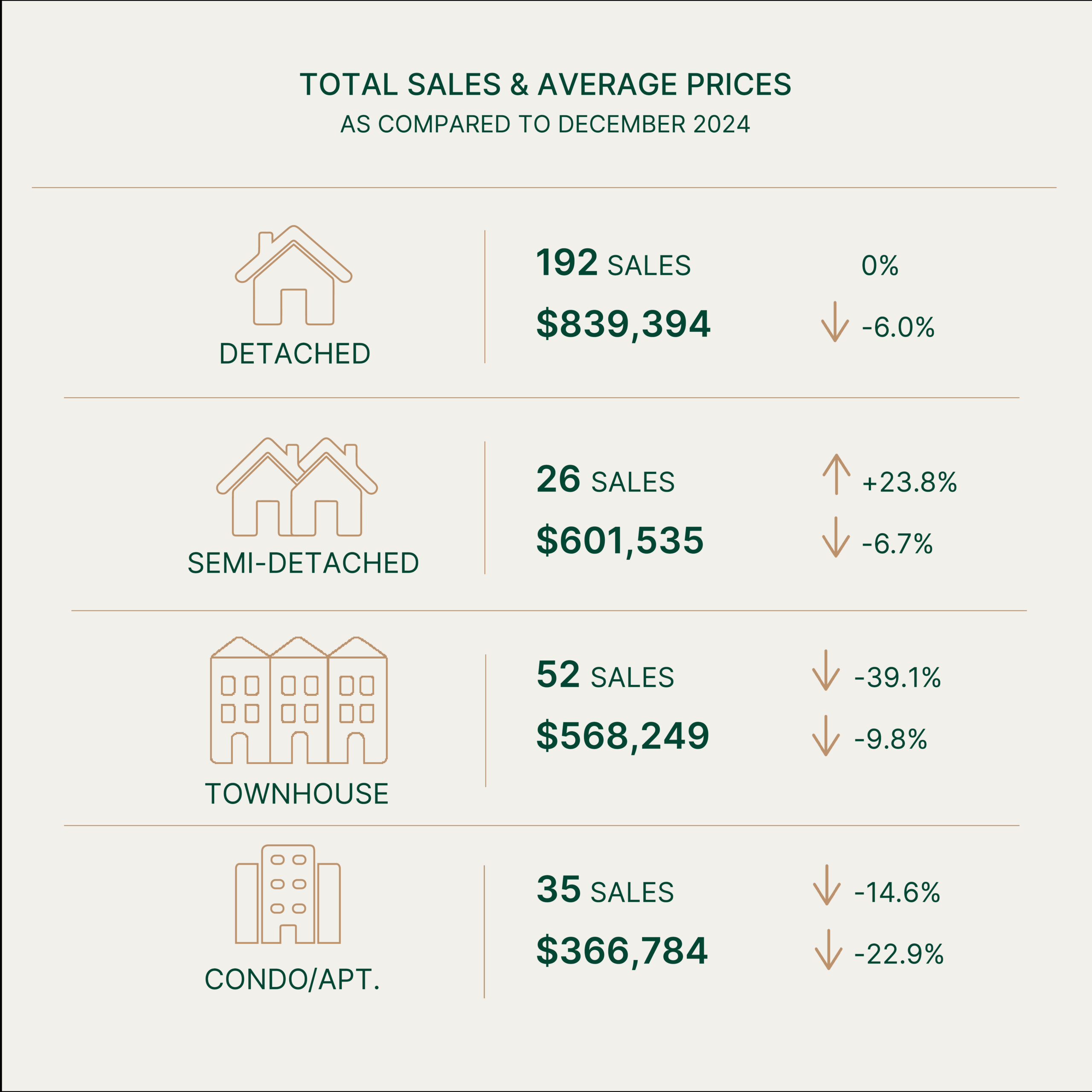 The Waterloo Region housing market saw an uptick in new listings throughout 2025, while sales activity eased and homes generally took longer to sell. These conditions unfolded amid ongoing affordability pressures for many buyers, with broader economic uncertainty weighing on market confidence. As prices faced downward pressure and inventory levels improved, buyers benefited from increased choice. For first-time buyers who were financially positioned to act, 2025 presented a favourable opportunity to enter the market.